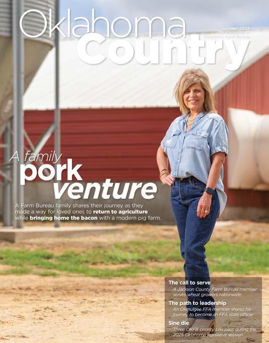 he Summer 2025 issue of Oklahoma Farm Bureau’s Oklahoma Country magazine, flled with stories from around Oklahoma agriculture and Farm Bureau, is headed to mailboxes and is also available on the OKFB website for viewing and reading.