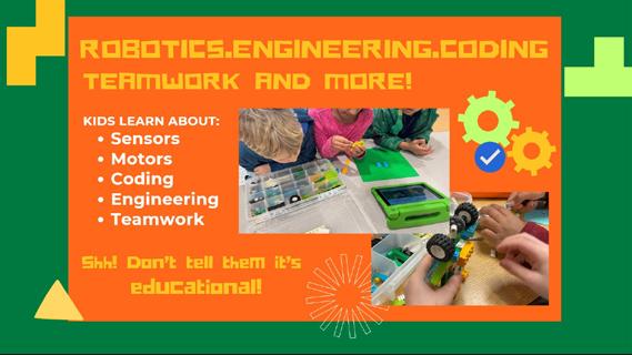 Gamebots Robotics: In this fast paced robotics program, kids design and build their own playable robotic games from hockey shooters to pinball machines while learning real engineering and coding skills. It’s the perfect blend of creativity, problem‑solving, and pure fun, giving your child a chance to build, test, and play with their own inventions each week.