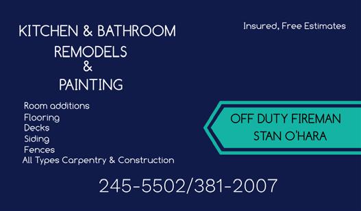 • Handyman for Hire: off-duty fireman, remodel, painting, flooring (tile, laminates, etc), sheetrock, roofing, siding, fences, decks, carports, room additions, windows & doors, custom made bookcases, shelving, cabinets, etc. General home repair. All types of construction,37yrs exp. 245-5502 or 381-2007.