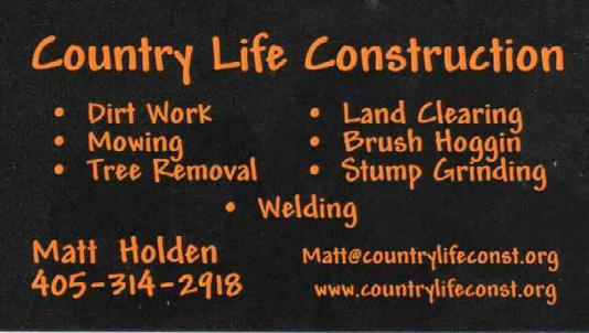 • Land clearing and mulching: call Chad Bias (405) 249-2030.