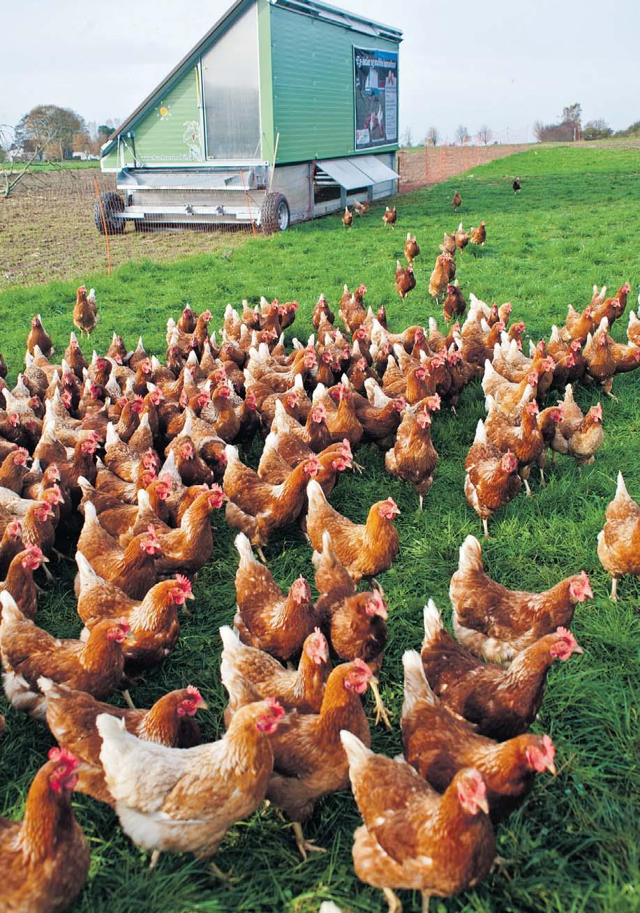 På Stensbølgård ved Kirke Hyllinge stortrives bedriftens høns. n gang om måneden er det nemlig store- yttedag, når deres mobile hønsehus transporteres til nye, grønne omgivelser