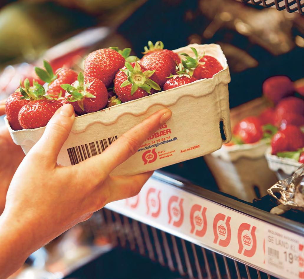 Det danske røde Ø-mærke kan du finde på økologiske produkter, der er helt eller delvist produceret i Danmark, eller som er pakket her i landet, fx appelsiner i poser.
