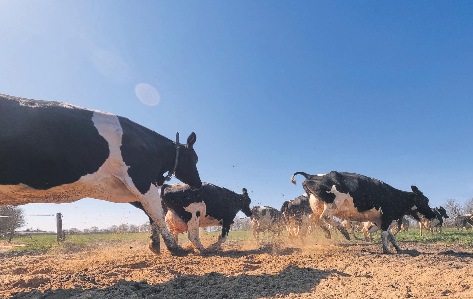 Efter nogle måneder på stald var det som altid nogle kåde, økologiske køer, som tumlede ud på græsmarkerne til en smuk forårsdag, hvor det ikke så ud til, at de tillagde det den helt store betydning, at corona-restriktioner medførte, at deres forårsfest for andet år i træk blev afholdt uden den sædvanlige kødrand af børnefamilier på den anden side af hegnet.