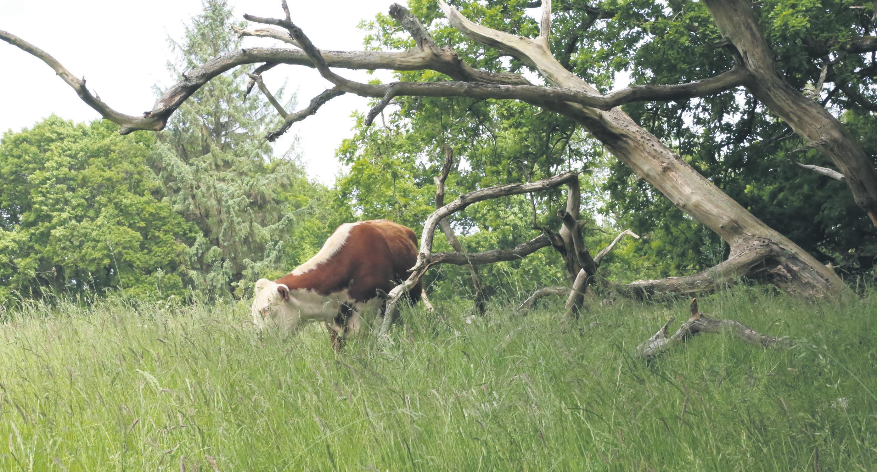 Mads Helms’ malkekøer har adgang til rigeligt med skygge på hans skovlandbrug. Foto: Marendine Krainert Ladegaard.