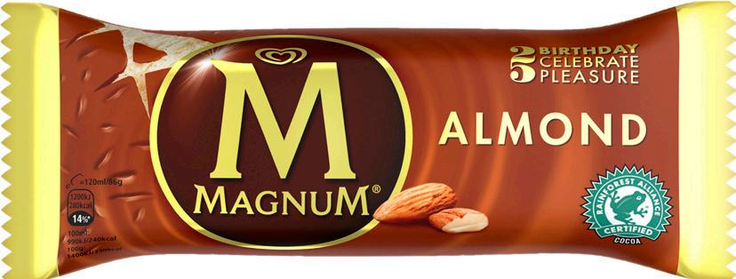 Vaniljeis med mælkechokolade (28%) og mandelsplitter (5%): Skummetmælk, Sukker, Kakaosmør, Vegetabilsk fedt, Mandler, Skummetmælkspulver, Glukosefruktosesirup, Mælkefedt, Vallepulver, Kakaomasse, Glukosesirup, Emulgatorer (E471, E442, E476), Stabilisatorer (E410, E412, E407), Vaniljestang, Aromaer, Farvestof (E160a). Kan indeholde spor af andre nødder og jordnødder.
