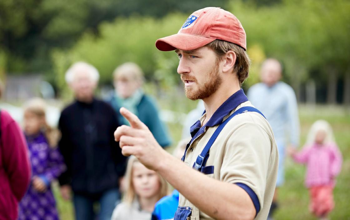 loger, får fingrene i jorden og varerne i gryden. Alle sanser og fornuftens store kapacitet er i sving. Og resultatet er, at der går en prås op for de fleste: Alt fra jord til bord hænger sammen. Det handler om meget mere end oplevelse, det handler om indlevelse og om indføling. Når kødet forsvinder fra kedelige udskæringer i frosne plastikposer og bli’r til levende, legende, sansende og begavede væsner, så vågner vi og forstår betydningen af dyrevelfærd, før dyret lader livet og bli’r til steg. Vi forstår, hvordan kemiske gifttåger ikke har noget at gøre i en verden af liv, som skal skabe de myriader af levende relationer, der er bestanddelen af en mangfoldig, sund og levedygtig natur. Vi forstår, at vi skal skabe de nødvendige kredsløb i den lokale verden, så vi undgår at lægge beslag på alverdens tropiske soyamarker til dyrefoder. Kredsløb, hvor vi kan returnere vores affald eller overskud til den muldjord, som vi ikke alene træder på, men som er det vigtigste af alt – sammen med vandet og luften.