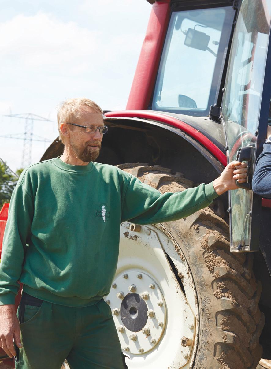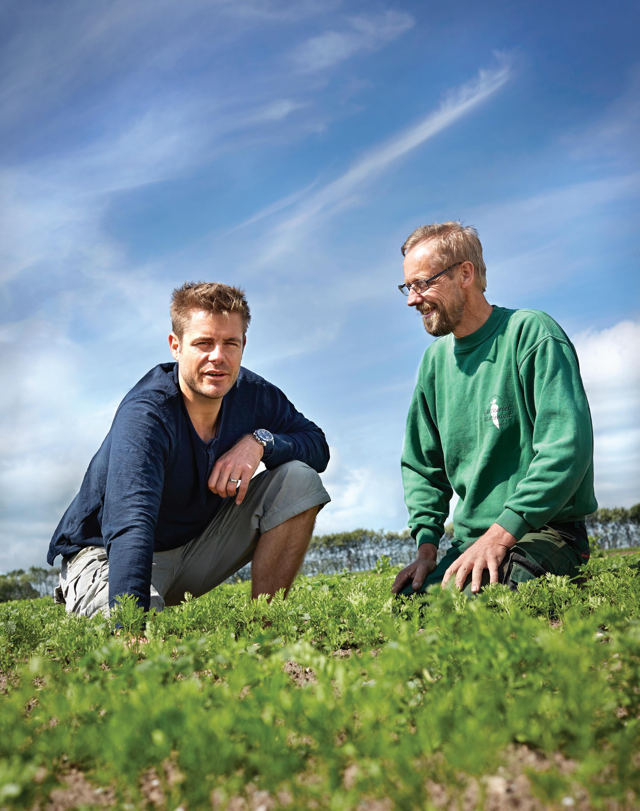 Hans brune negle afslører med det samme, hvem der er landmanden af de to mænd. De nærstuderer begge rækkerne af spæde gulerodstoppe, hvor små ukrudtsplanter bryder markens snorlige orden.