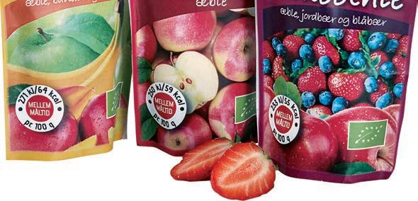 Fremstillet af økologisk frugtpuré der er koldpresset. Det giver mulighed for at bevare frugternes friskhed og smag, men også for at spise et stort udvalg af frugt hele året - ikke kun årstidens frugt.