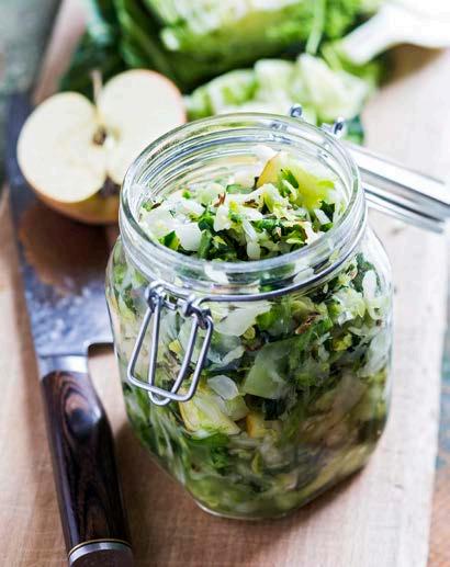 Salt er sauerkrautens helt. Salten hjælper de gode bakterier, der naturligt findes i kålen. Ved at forskubbe magtbalancen til de salttolerante mælkesyrebakteriers fordel, så gives der baghjul til bakterier, der fx kan udvikle råd. Du skal bruge to gram salt pr. 100 gram kål/grønt. Gerne groft havsalt. Det er vigtigt, at saltmængden er præcis, så vej ingredienserne af på en køkkenvægt.