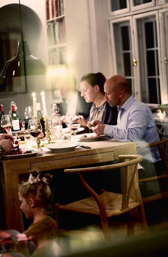 ”… masser af hygge og samvær med familie og venner og til kamp mod mørket, også helst et eller flere tændte stearinlys. Jeg har aldrig været til overdådige middage, så maden er ikke supervigtig for mig. Men jeg elsker gløgg og æbleskiver i december (og kun i december).”
