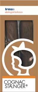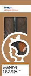 irmas Økologisk balance chokoladestænger, som er udviklet af Økoladen, er delvist håndlavede efter gamle håndværkstraditioner. Serien dækker alt fra marcipanbrød til ingefærstænger. Cognac- og mandelnougat: 29,50 kr. pr. pk. med 75 g.