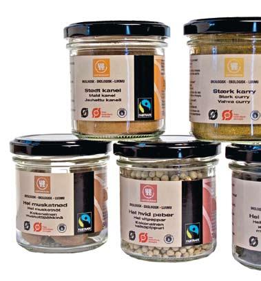 Hvorfor ikke give fattige bønder lidt krydderi på tilværelsen, når du alligevel pifter maden op med økologiske smagsforstærkere? Serie med stødt kanel, hel muskatnød, stærk karry samt hel hvid og sort peber fra urtekram. 50 gram pr. dåse til 27,95 kr., som sælges i de fleste supermarkeder.