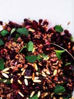 Korn-taboulleh med rødbede, granatæble og mynte