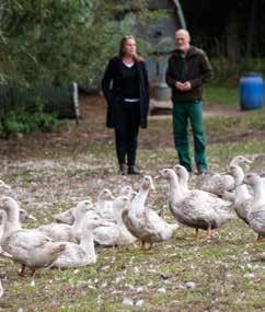 Grise, gæs og geder. Det er bare nogle af de dyr, der bor på den økologiske gård med 28 hektar jord hos Lone og Søren. Parret lever af det, de selv dyrker og de indtægter, det giver. De dyrker æbler, røde druer og har en stor køkkenhave. Men Lone er ikke kun landmand. Hun deltager yderst aktivt i debatten om dyrevelfærd, økologi og landbrug. Hendes facebook-side, Lone Landmand, har næsten 4500 følgere, og hendes blog har ca. 100.000 sidevisninger om måned- en. Hendes bog