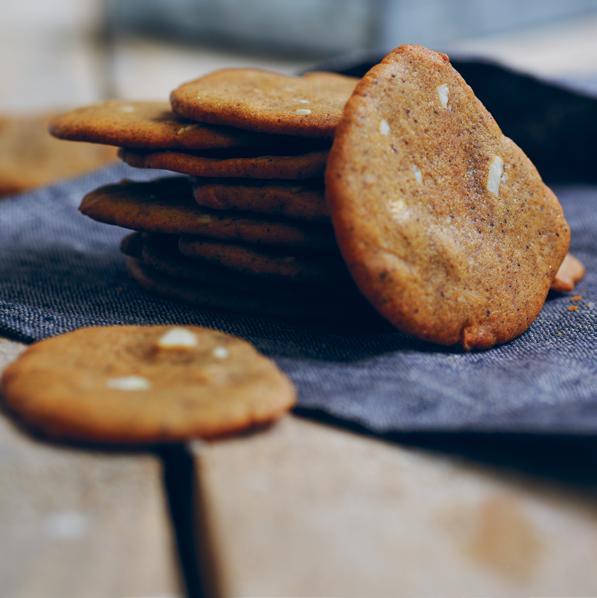 Bland vaniljekorn, sukker, hvedemel og appelsinskal en stor skål og ælt små tern af køleskabskoldt smør i blandingen, til dejen er ensartet. Hak chokoladen fint og ælt den i dejen. Form dejen til en lang stang med en diameter på ca. 5 cm. Stil den på køl mininum 1 time, så dejen bliver skærefast.