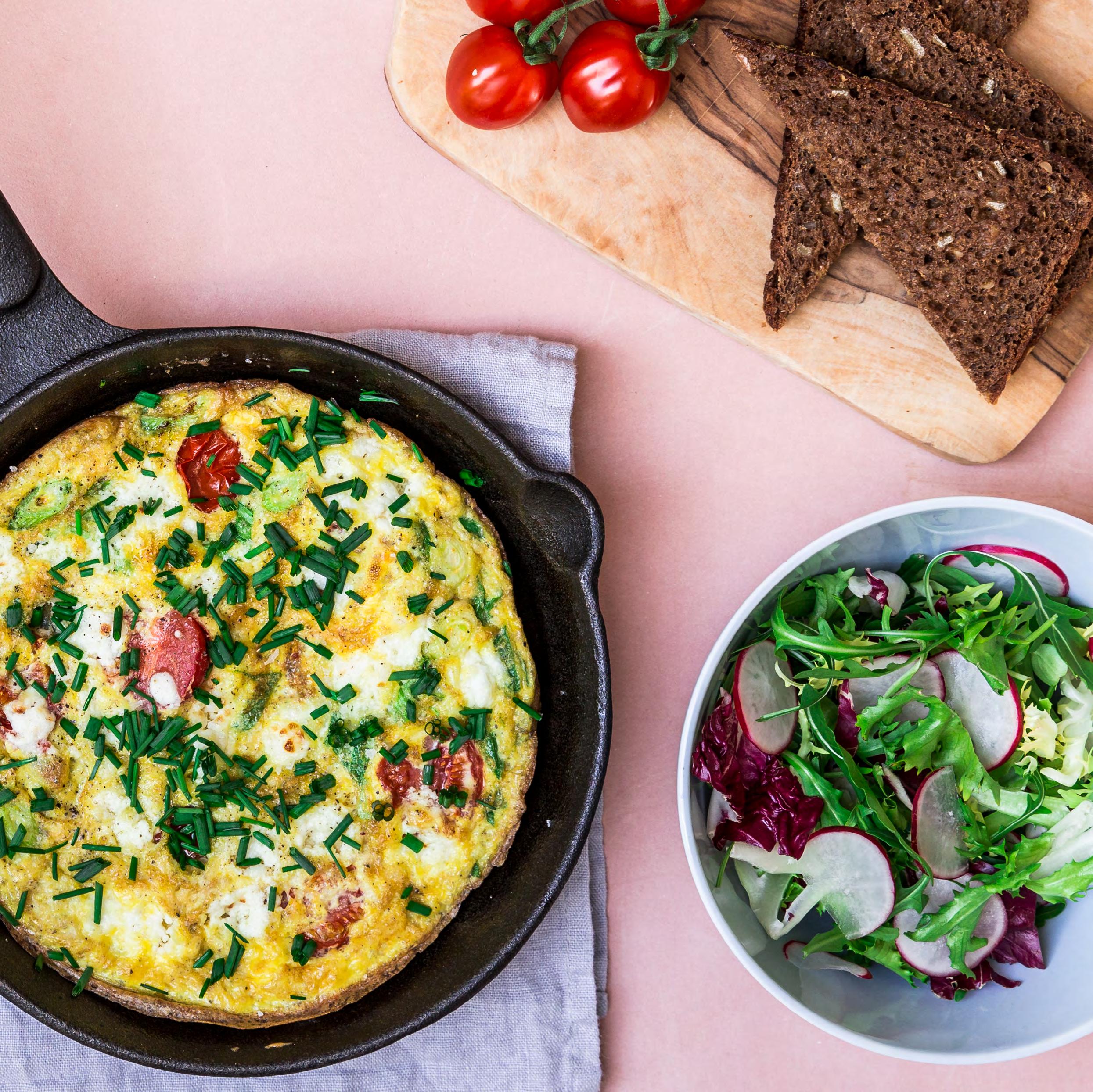 Hurtig æggekage med ost & forårsløg
