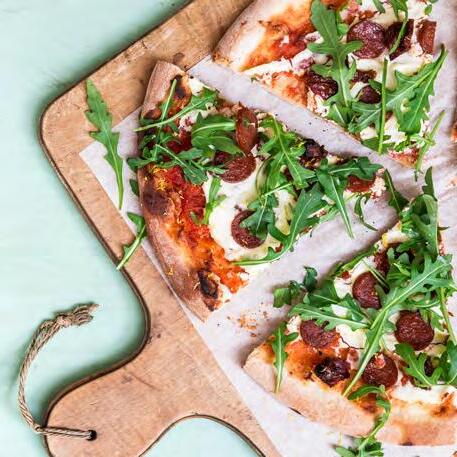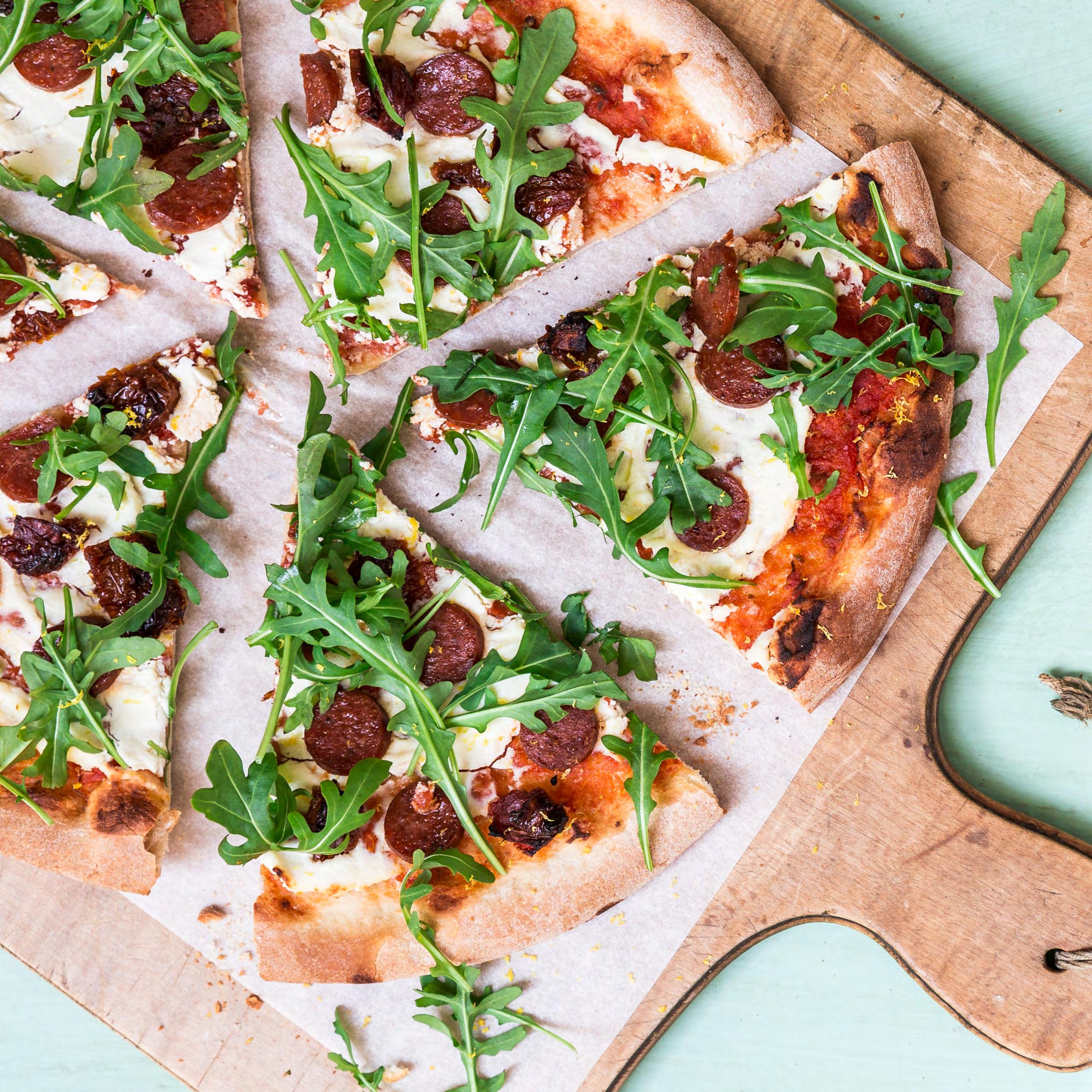 SIDE 35 Pizza med ricotta, rucola & chorizo