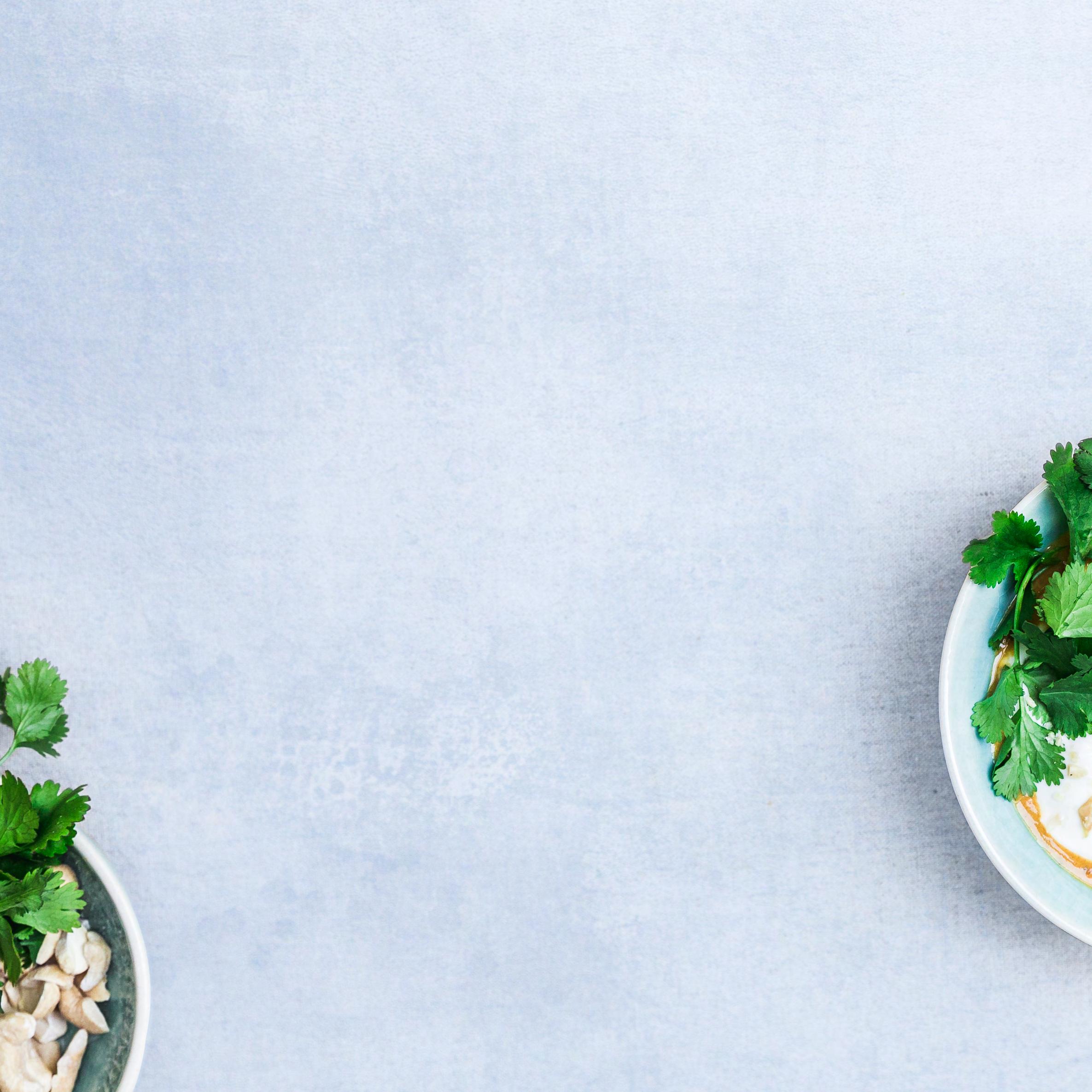 Top med urter, cashewnødder og yoghurt inden servering.