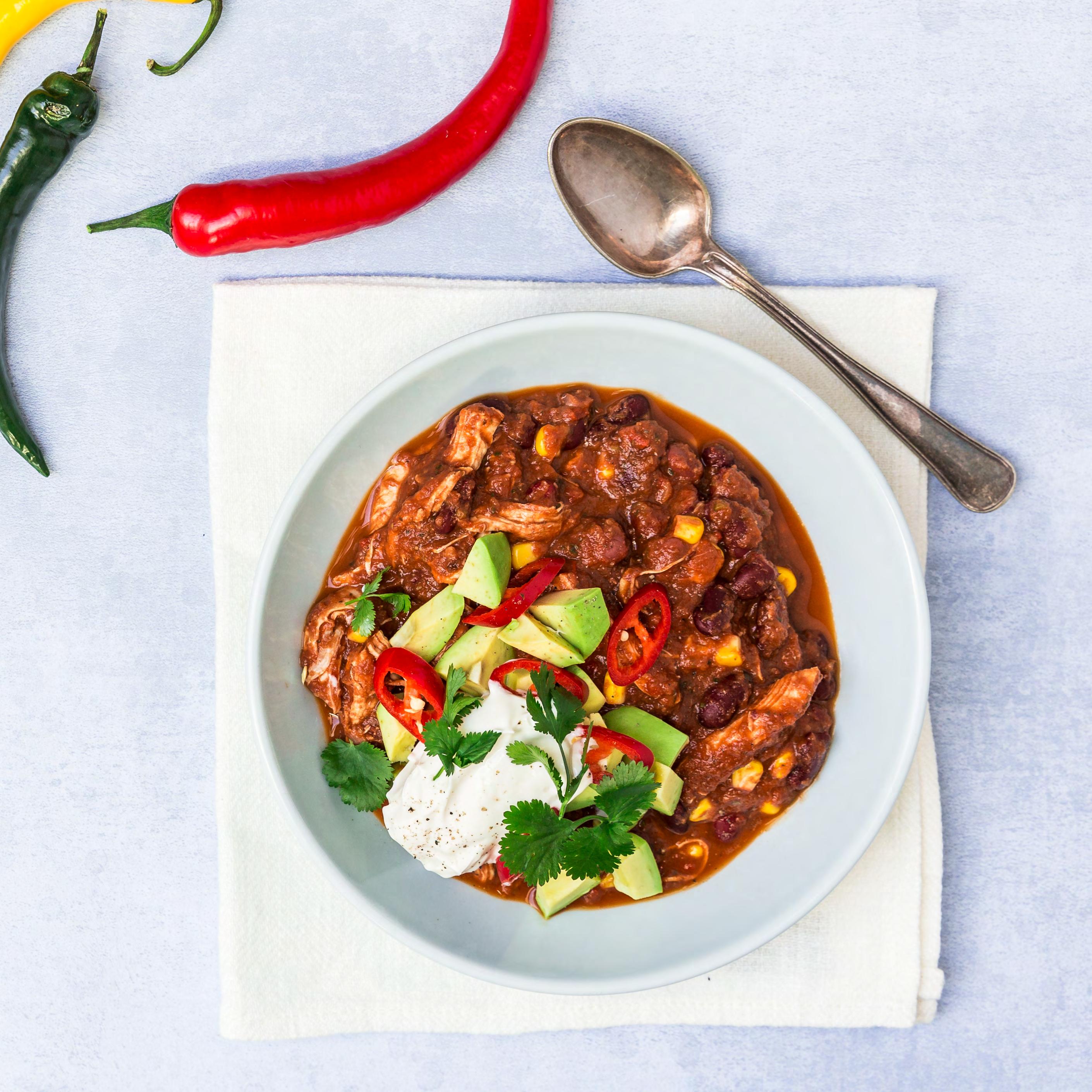 SIDE 20 Chili con carne med revet kylling & kidneybønner