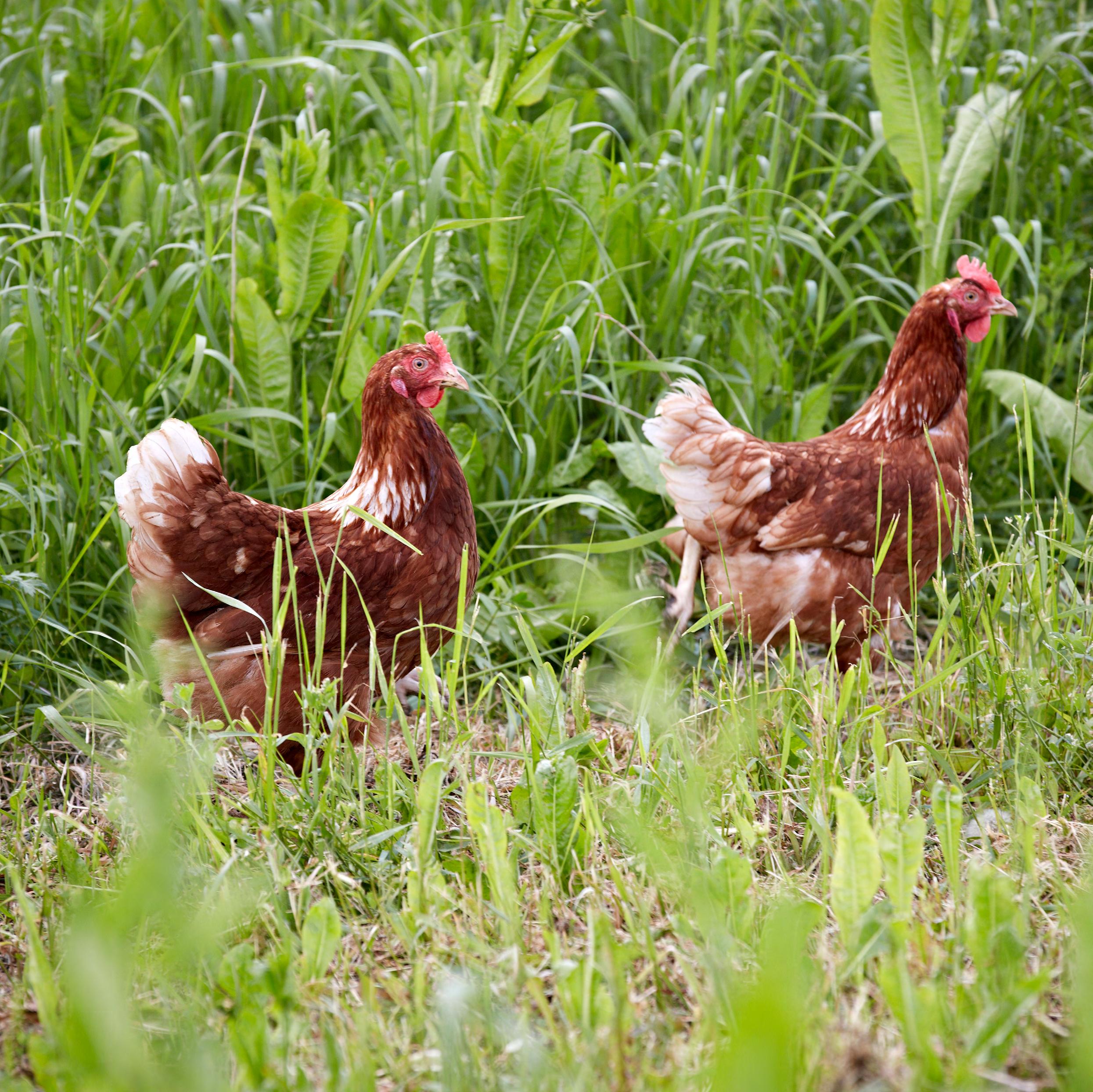 De økologiske høns har god plads indenfor og adgang til det fri. Både ude og inde kan de udøve deres naturlige adfærd – baske med vingerne, skrabe i jorden, pudse fjer eller tage et støvbad.