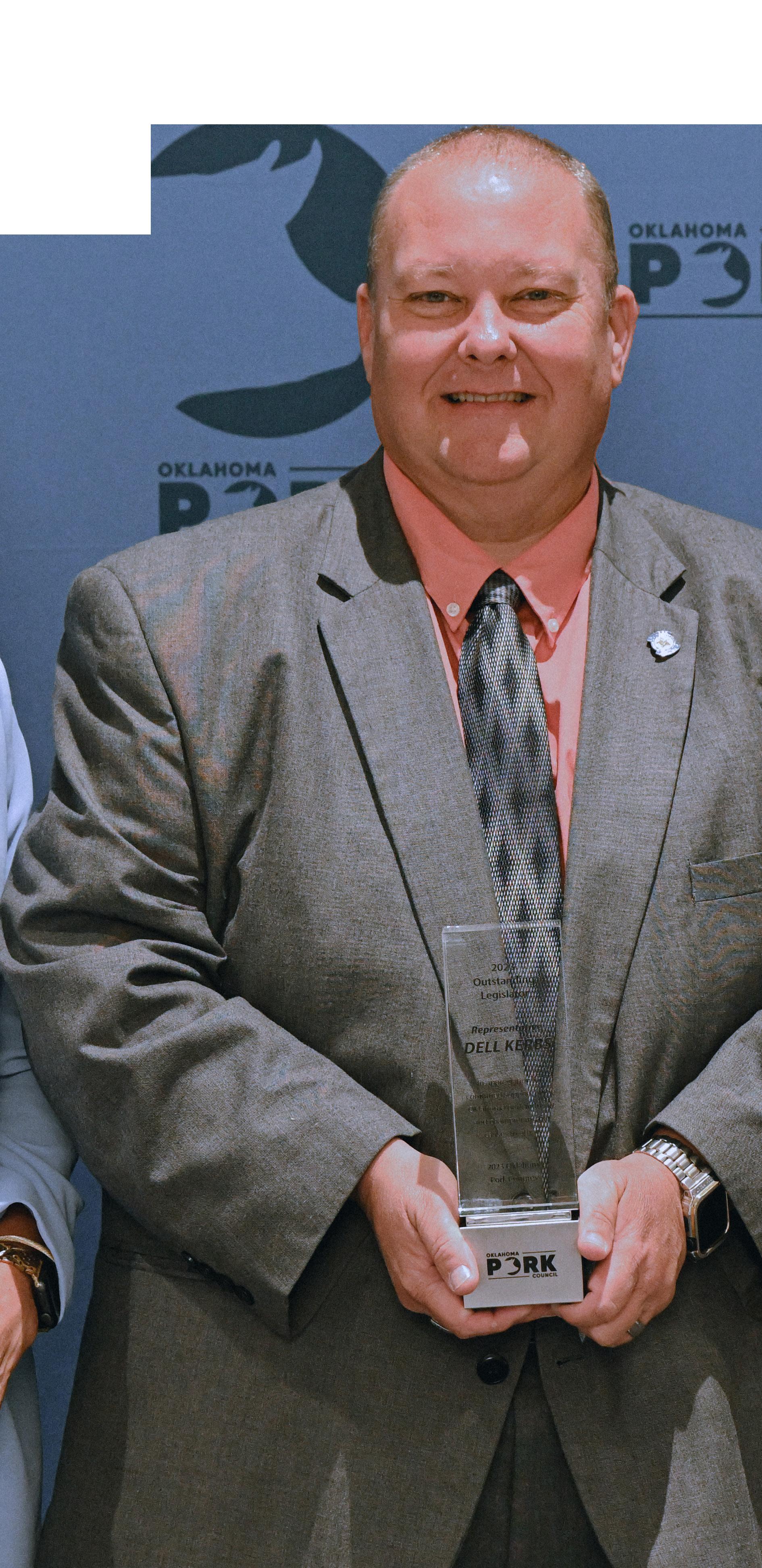 With just two years of experience representing District 26 in the Oklahoma House of Representatives, legislative leaders tapped Representative Dell Kerbs to serve as Chairman of the House Agriculture Committee in 2018. For the past six years, Representative Kerbs has used this position to be an effective and passionate agriculture supporter, which led to his selection for the Oklahoma Pork Council 2023 Outstanding Legislator Award.