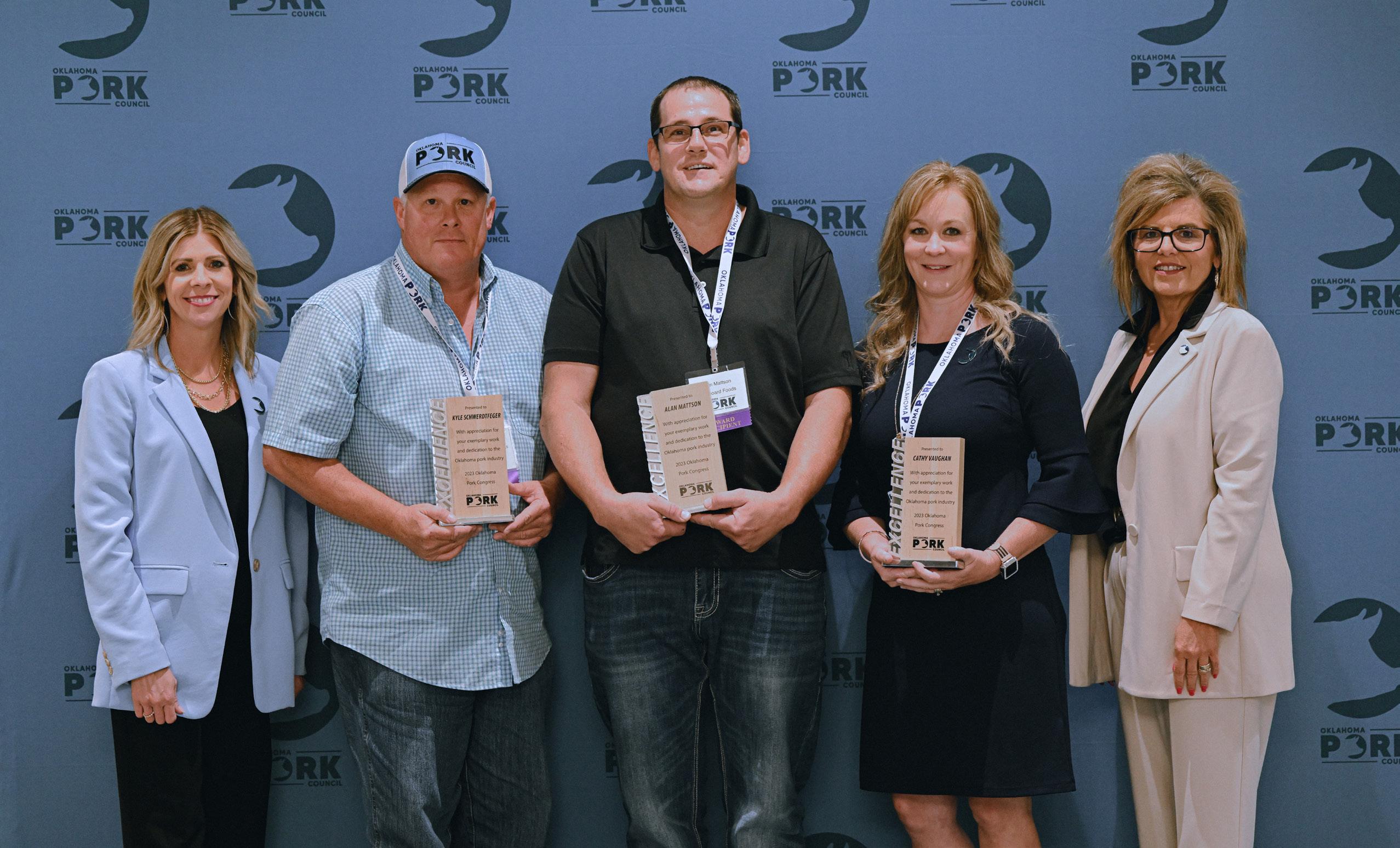 In2018,theOklahomaPorkCouncilestablishedExcellenceAwardstorecognizethoseporkproducerswhohave made the daily work of raising pigs more than just a job, but a passionate calling to take care of their animals andthepeoplearoundthem.Thisawardcoversallsectorsofporkproduction,anditrewardsthoseoutstanding producerswhoexcelinatleastoneofOklahomaPork’sfourstrategicintentions.
