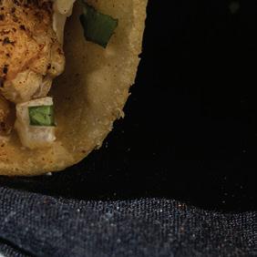 Simmons Catfish Street Tacos Grilled, Blackened, and Fried, Topped with Creamy Jalapeño Coleslaw and Avocado Tomatillo Salsa with Red Onion and Cilantro Sprinkle SOMBRA MEXICAN KITCHEN
