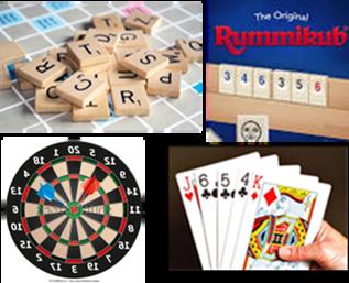 Je kan deelnemen aan de volgende activiteiten : kaarten -rummikub en Darts bij goed weer Kubb en/of Petanque onze traditionele bingo