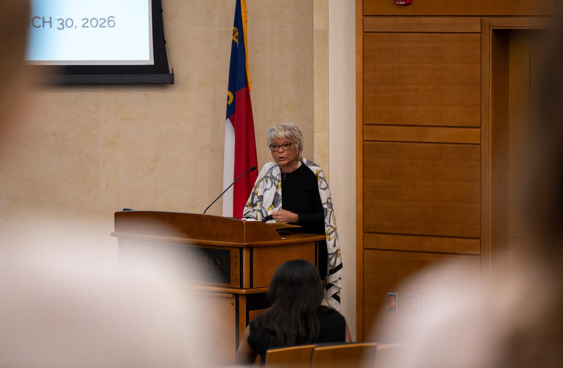 On March 30, distinguished alumna and civil rights advocate Professor Beth N. Hopkins (‘73) refected on her experience as one of the frst Black female students at Wake Forest in a keynote address to launch the Offce of Leadership Engagement’s frst annual Leadership Week.