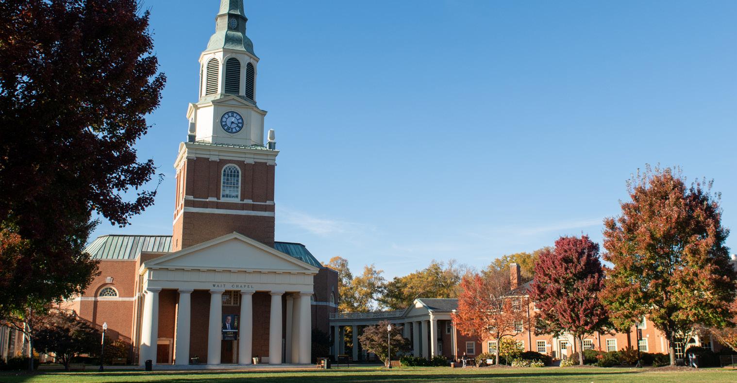 When Wake Forest reveals your name in May, I’m sure that some members of our community will react with skepticism and grumbling, no matter who you are. You’ll hit the ground running this July and face competing demands from students, faculty, sta , alumni, parents, peer institutions, donors, Winston-Salem residents and even the federal government.
