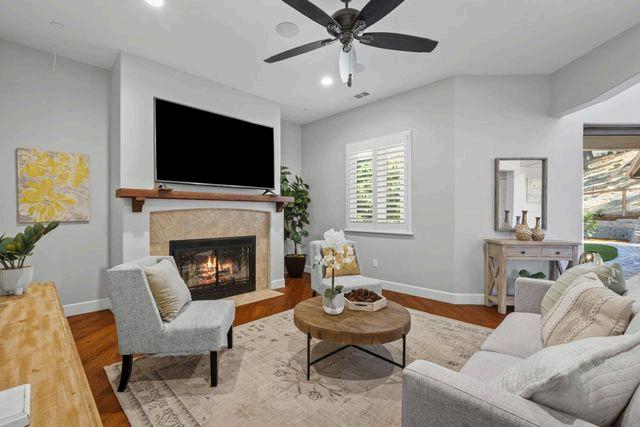 Jaw Dropping! Welcome to this stunning 4 bedroom, 3 bathroom residence in the highly desirable Country Estates neighborhood. Set on a generous 13,600 sq ft lot, this beautifully upgraded 3,036 sq ft home blends refined design, modern comfort, and breathtaking mountain views. Step inside to a light filled interior featuring new designer light fixtures and three fireplaces, including a dramatic soaring stone fireplace that anchors the main living space with warmth and character. The remodeled kitchen is a chefs delight, showcasing granite countertops, stainless steel appliances, center island, and a pantry. Retreat to the luxurious primary suite, complete with dual fireplaces, a remodeled spa-inspired bathroom, and generous space to unwind All bathrooms have been thoughtfully updated with high-end finishes The expansive backyard offers both beauty and low maintenance, featuring new artificial grass and plenty of room for gatherings, play, or simply soaking in the surrounding natural scenery Additional highlights include an oversized 3-car garage and owned solar for energy efficiency