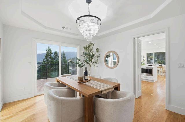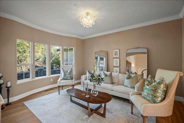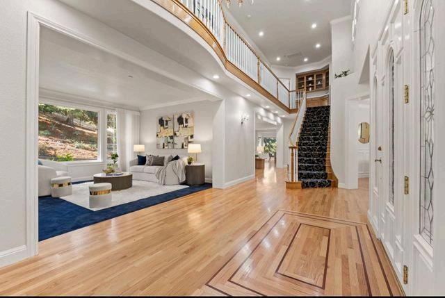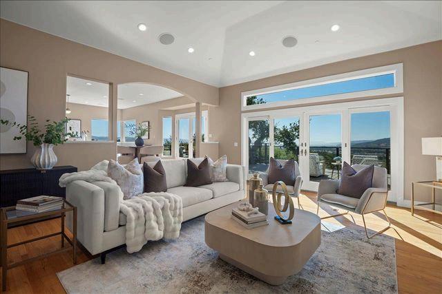Perched on a quiet and private road overlooking the stunning city of Gilroy, this thoughtfully renovated residence offers 4 bedrooms, 35 baths, and an expansive 3,461 sq. ft. of refined living space on a remarkable 24,725 sq. ft. lot. Designed to impress, the home features breathtaking views from nearly every room, oversized windows that flood the space with natural light, and multiple balconies that seamlessly blend indoor and outdoor living. The main-level primary suite is a true retreat, complete with a modern fireplace, spa-like bathroom with dual vanities, a large soaking tub, and a walk-in closet perfectly positioned for ease and accessibility. The chefs kitchen showcases stainless steel appliances, an inviting eat-in area, and flows effortlessly into a dedicated dining room, along with separate living and family rooms ideal for both everyday comfort and elegant entertaining Downstairs, a private retreat awaits with a central flex space perfect for a home office or kids lounge, an ensuite bedroom, radiant heat flooring, and a versatile bonus room suited for a gym, media room,