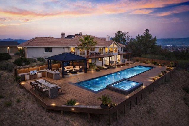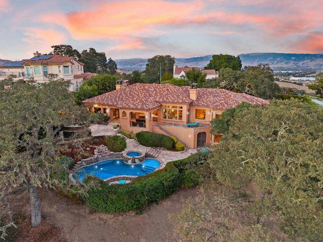 Nestled in The Forest, Gilroy's most exclusive gated community, this stunning custom estate embodies tranquility, luxury and extreme privacy. Located at the end of a serene court, enveloped by vast open space. With an amazing open floor plan and tons of natural light pouring through numerous windows, every room offers breathtaking, unobstructed views that captivate from dawn to dusk The main floor features the primary bedroom retreat, complete with a newly remodeled luxurious bathroom, spacious closet, and custom built-in cabinetry The gourmet kitchen is a chef's dream, boasting sleek quartz countertops, a convenient walk-in pantry, and a high-end Viking gas range Downstairs also includes a versatile office with French doors, while upstairs you'll find three additional bedrooms and two bathrooms for family or guests. Step outside to the entertainer's paradise backyard, highlighted by a large pool, brand-new deck, a commercial pizza oven, raised garden beds, open grass space - all set against a backdrop of tranquil beauty in this prestigious enclave.