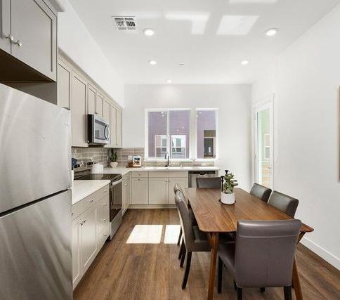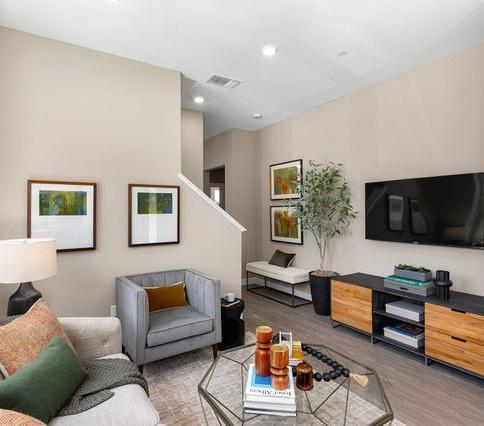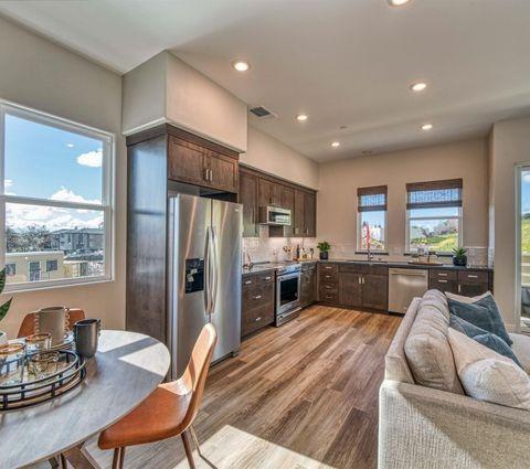 Discover contemporary comfort at 122 Notion Way, Hayward - a stunning 3-bedroom, 3.5-bathroom condo offering 1,760 square feet across three levels. This brand-new 2024 construction features open-concept design, premium stainless steel appliances, smart home features, solar power for more efficiency, cameras throughout and a private balcony with scenic views Perfect for both quiet family time and entertaining The kitchen shines with stainless steel appliances, quartz countertops, a large island, tile backsplash Upstairs, bedrooms with private en-suites await, including a primary suite with a double vanity, walk-in shower, and closet Upgrades enhance the kitchen, baths, and flooring Perfectly positionednearby and Mission Hill Driving Range for recreation Commuting is effortless with easy I-880 and Highway 238 access connecting you to the entire Bay Area