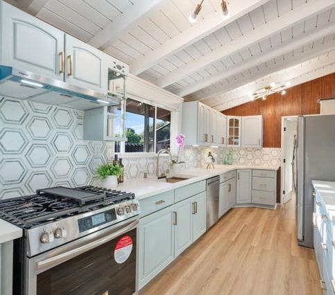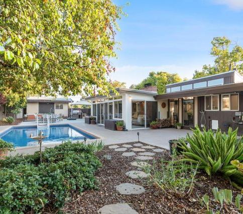 Beautifully reimagined single-story retreat in Sunnyvales coveted Ponderosa Park neighborhood Tucked away on a quiet cul-de-sac, this thoughtfully updated home blends timeless comfort with modern design and seamless indoor-outdoor living Inside, the open layout features soaring ceilings, fresh paint, new LVT flooring, and abundant natural light through Anderson windows and sliders A sunken living room and adjoining casual dining area connect to a granite-clad chefs kitchen with custom alderwood cabinetry, stainless appliances, and countertop seating. Beyond, a sunken family room offers updated lighting, a gas fireplace, and sliding doors to the landscaped backyard. The spa-inspired primary suite showcases a custom vanity and remodeled ensuite, while both baths feature stylish upgrades. A versatile multipurpose room with a built-in spa invites use as a gym, yoga studio, or retreat. CoHigh-quality heating and A/C, fresh exterior paint, and upgraded systems enhance comfort. Outdoors, a private backyard is ideal for entertaining, gardening, or play. All these moments from Apple,