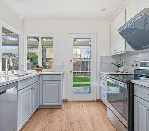 This warm and inviting home is comprised of 4 bedrooms, 25 bathrooms, and 2204 square feet of living space. A short commute to all the major high tech companies, yet tucked away in a quiet residential tract. The corner lot measures 6080 square feet. Separate living, dining, and family rooms. New kitchen with shaker cabinets, quartz counter, tile backs plash and stainless appliances. All three bathrooms remodeled as well. Light and bright with fresh paint inside and out. Beautiful red oak hardwood flooring and new carpeting in the living room. New six panel doors. Wood burning fireplace. Two car attached garage with auto opener. Spacious patio in back for entertaining or for the kids to play. This home is served by Braly Elementary, Peterson Middle, and Wilcox High school