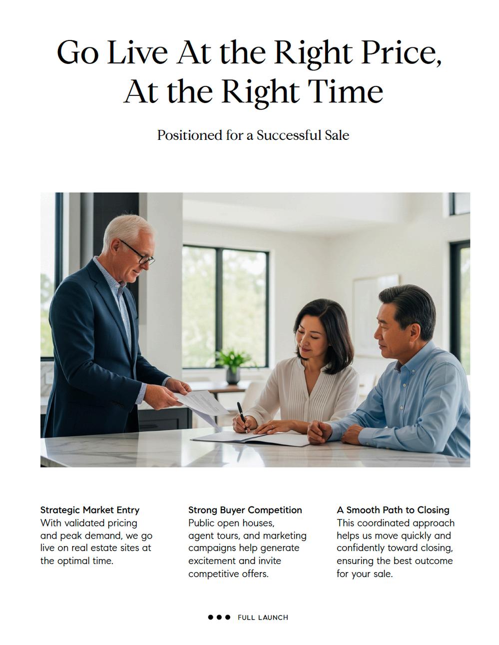 Print Collateral: We create high-quality printed materials including professionally designed flyers, neighborhood postcards, and, for select luxury listings, elegant property booklets to elevate the in-person marketing experience. These pieces are distributed at open houses, broker tours, and throughout the surrounding community to generate local awareness and reinforce the home’s value. Each item is thoughtfully branded, visually compelling, and updated as needed to reflect milestones such as “Coming Soon,” “Just Listed,” or “Price Improvement,” ensuring a cohesive and polished presentation at every stage of the listing.