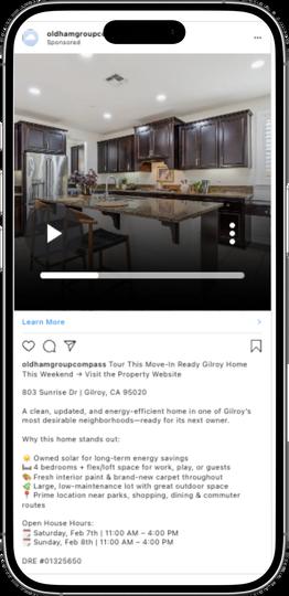 DigitalAds: We run digital ads on Facebook, Instagram, and Google Ads to drive traffic to the property website. These ads remain active for the duration of the listing and are updated to reflect any status changes, such as "Coming Soon," "Just Listed," and "Price Reduction."