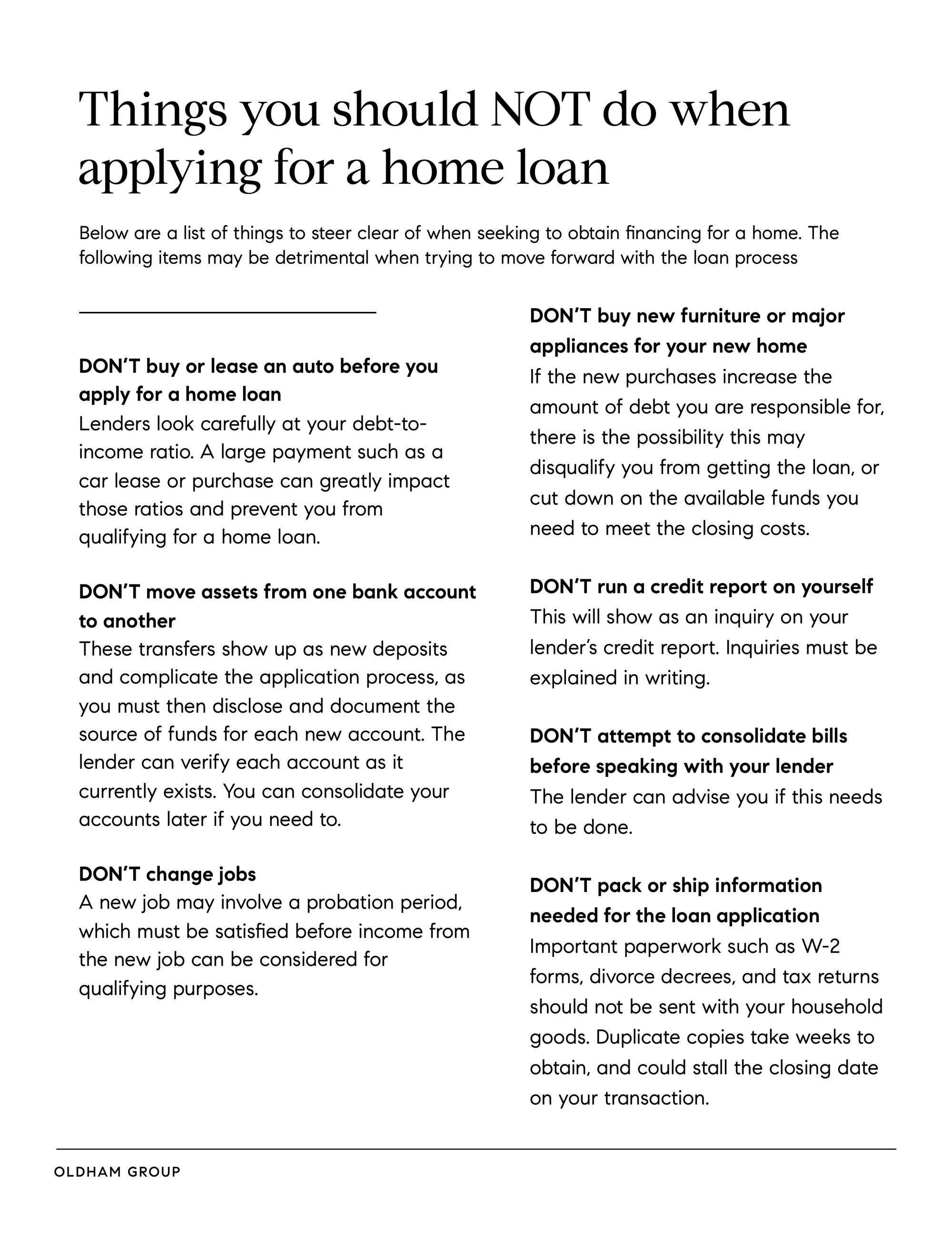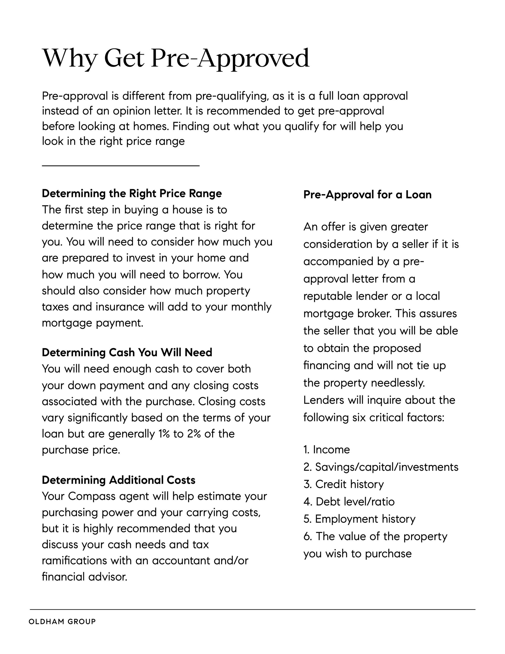 Encourage you to contact a lender for pre-approval and provide recommended lenders (at least 3) if requested, or please provide your agent a copy of your pre-qualified letter.