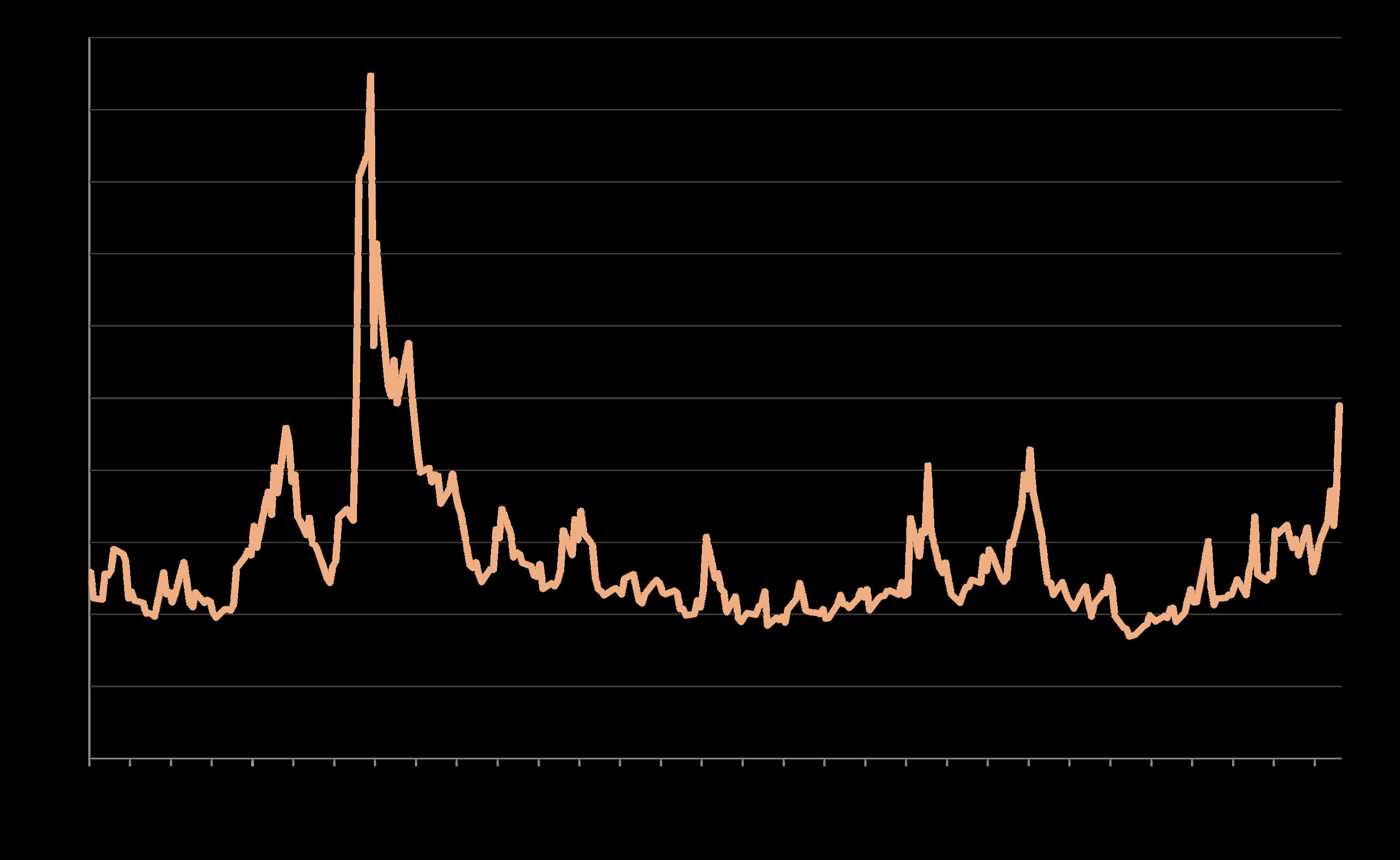 *Source: 'Measuring Economic Policy Uncertainty' by Scott Baker, Nicholas Bloom and Steven J. Davis, 3component index, www.PolicyUncertainty.com, https://www.policyuncertainty.com/us_monthly.html.