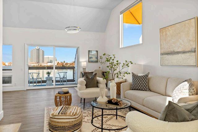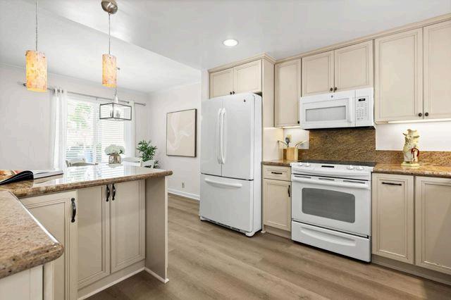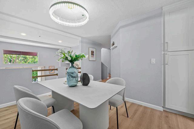 Stunning contemporar y end unit townhome elegantly designed and beautifully remodeled to perfection with high-end finishes throughout. Extremely sunny and bright with remarkable cit y view. Great modern floor plan with two bedroom suites, high ceilings and ample living spaces. Office or study area in landing area. Large windows and sliding doors providing lots of natural light Amazing kitchen with quartz counters and mosaic tile backsplash, high gloss cabinets, high qualit y stainless steel appliances Luxurious primar y bathroom with large shower and double sinks, chic vanit y and LED mirror Primar y suite with built-in closet organizers and trendy closet doors Gorgeous hardwood floor, double pane windows, recessed LED lights throughout New st ylish chandeliers and LED fireplace In-unit laundr y and attached side-by-side 2 car garage with extra large storage. Right next to Metro Center, CVS, Safeway, salon and restaurants. Top-rated schools, librar y, parks, lagoon trail & recreational center nearby. Easy access to HW Ys 101 and 92.