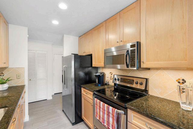 Completely updated in 2015, this 2 bedrooms / 2 baths condo is a picture perfect home. Recessed lighting, hardwood flooring throughout, tile flooring in baths and kitchen, quarts counters, stainless steel appliances and custom built cabinetr y with soft close doors and drawers are just some of the fabulous features. The attention to details including elegant crown molding, updated fireplace and shutter st yle closet doors Master bathroom features multi-jet shower, recessed lighting, recessed shower shelf and more A short walk to waterfront parks, communit y center, shops, and restaurants Easy access to the private patio from master bedroom suite or from the living room
