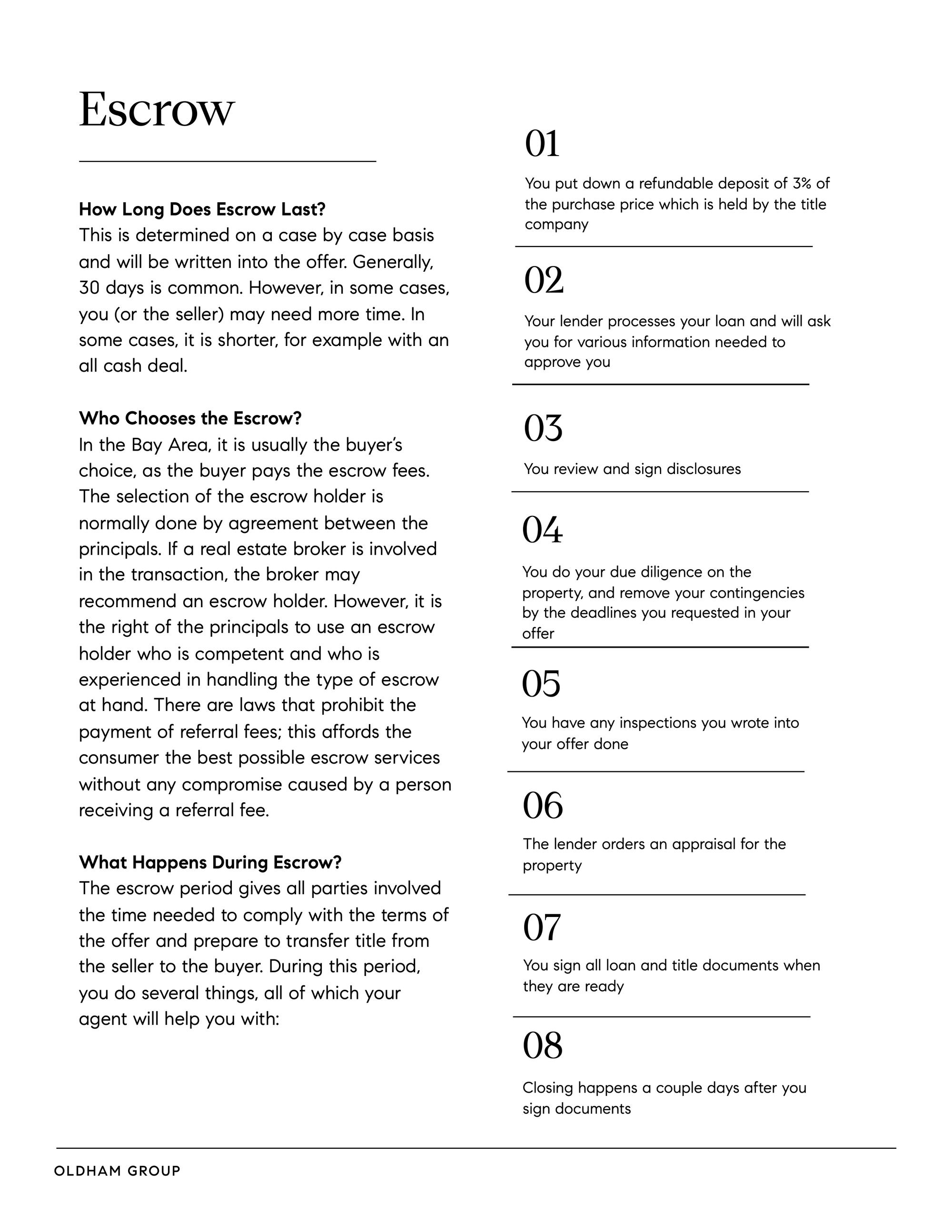 Facilitate closing for you and the seller.