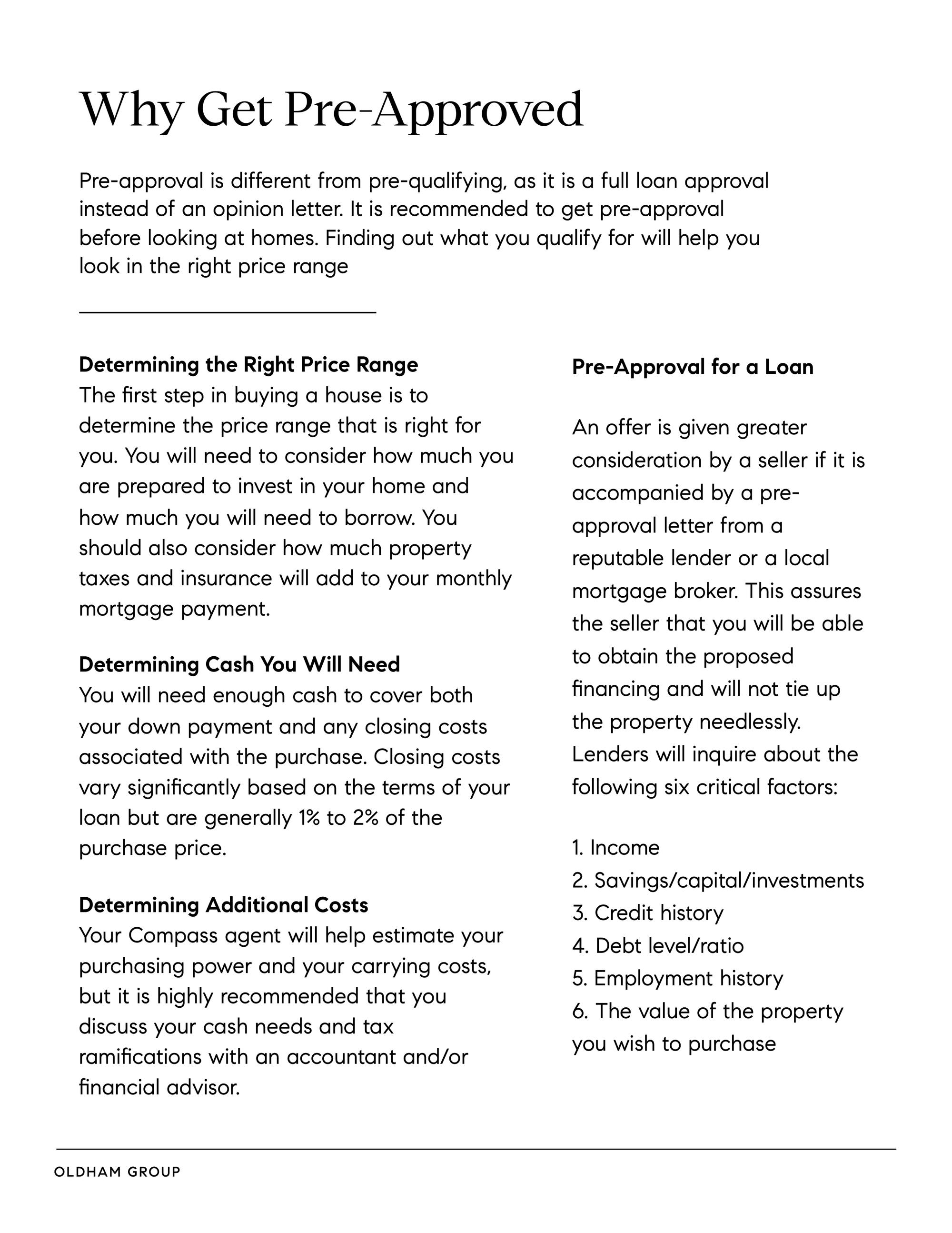 Encourage you to contact a lender for pre-approval and provide recommended lenders (at least 3) if requested, or please provide your agent a copy of your pre-qualified letter.