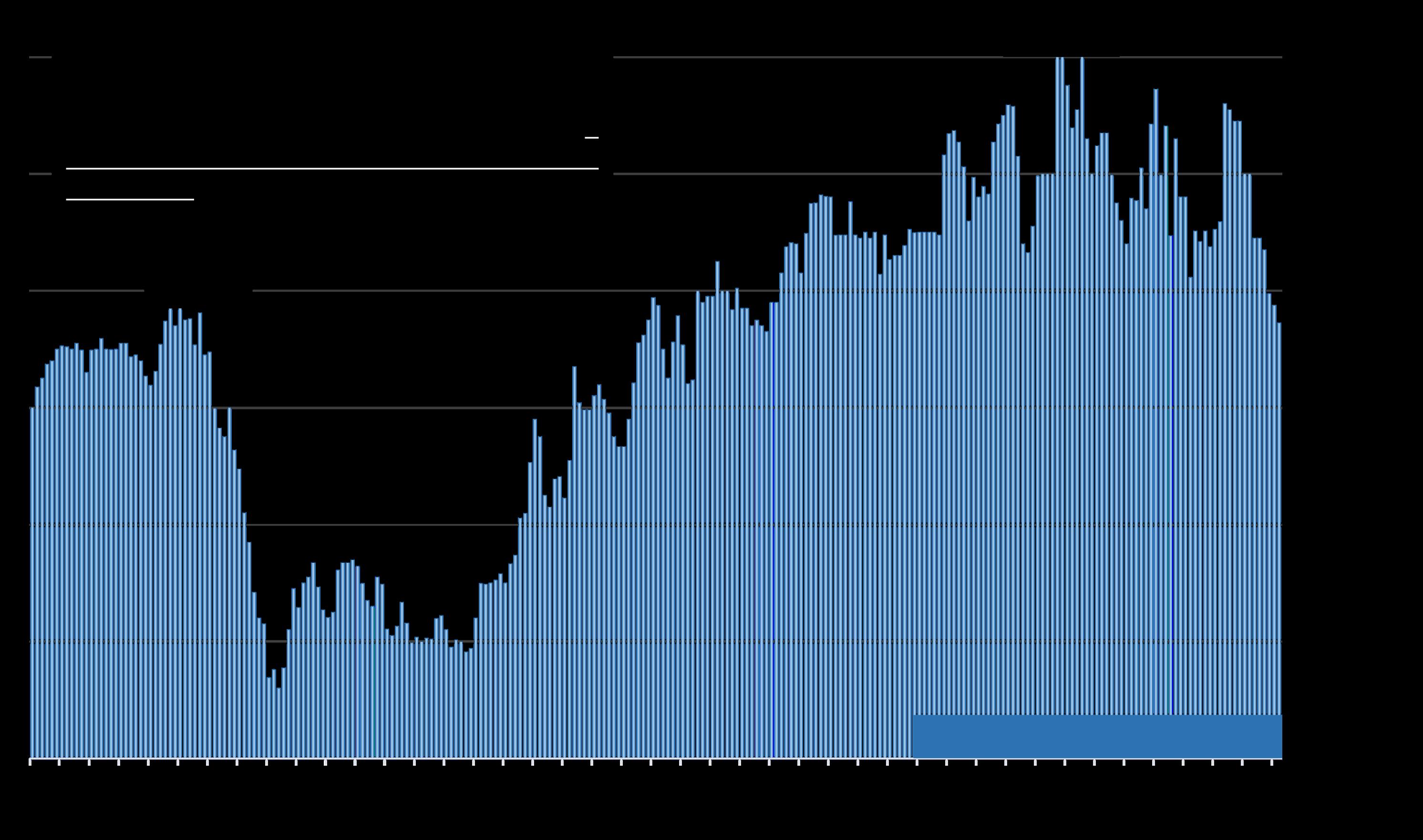 *Source: 'Measuring Economic Policy Uncertainty' by Scott Baker, Nicholas Bloom and Steven J. Davis, 3component index, www.PolicyUncertainty.com, https://www.policyuncertainty.com/us_monthly.html.
