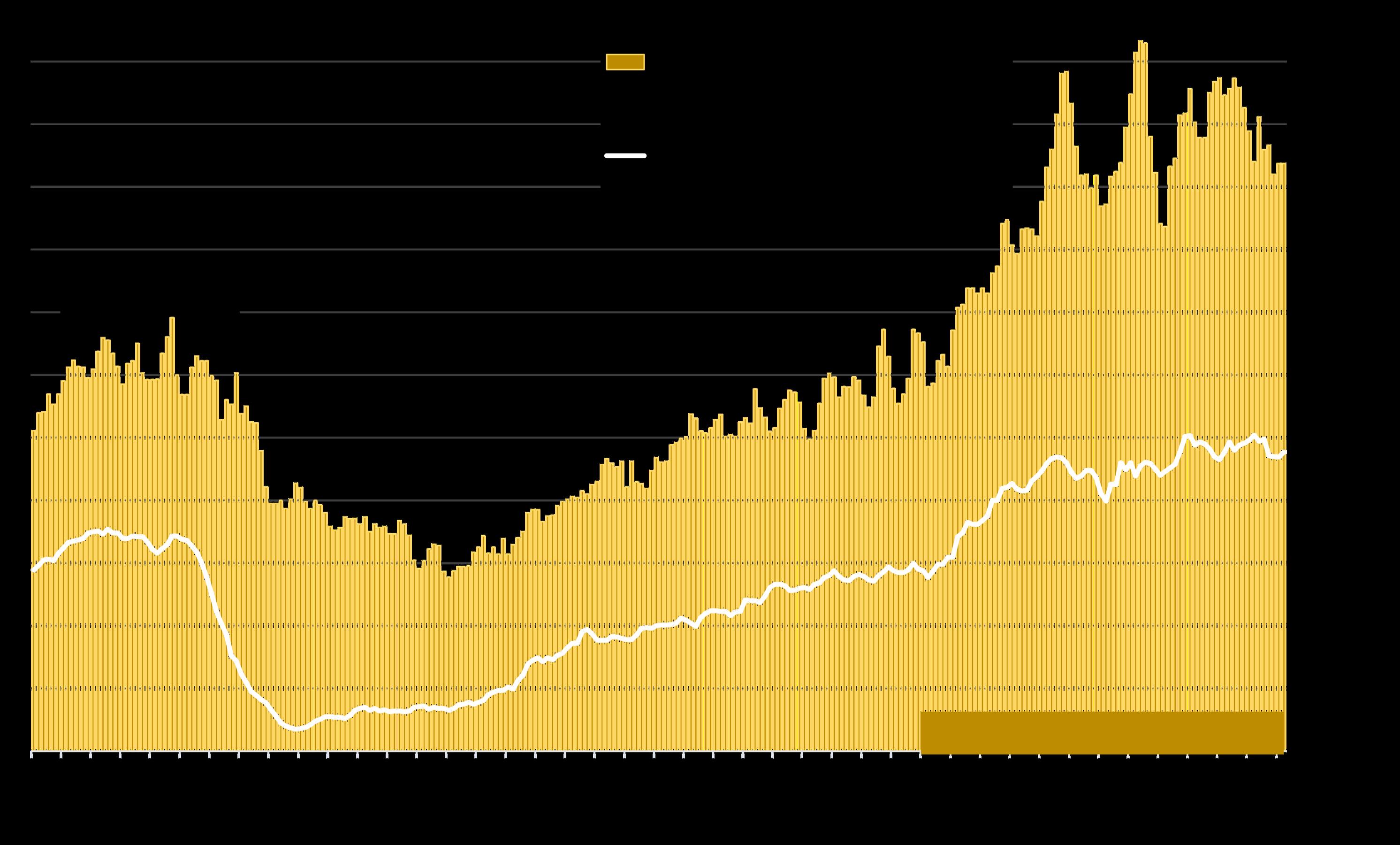 *Source: 'Measuring Economic Policy Uncertainty' by Scott Baker, Nicholas Bloom and Steven J. Davis, 3component index, www.PolicyUncertainty.com, https://www.policyuncertainty.com/us_monthly.html.