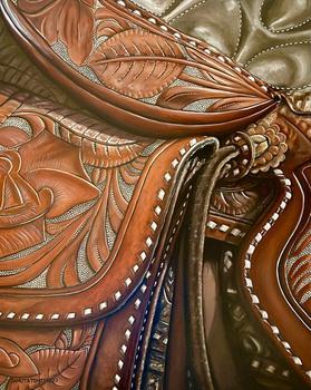 Through painting and leatherwork, he is able to create a balance of fine art and functional art. Whether it is a pair of chaps to ride a bucking horse, a painting, or a drawing, he is honored that others can find enjoyment in his work and he considers it a blessing to create and learn each day.