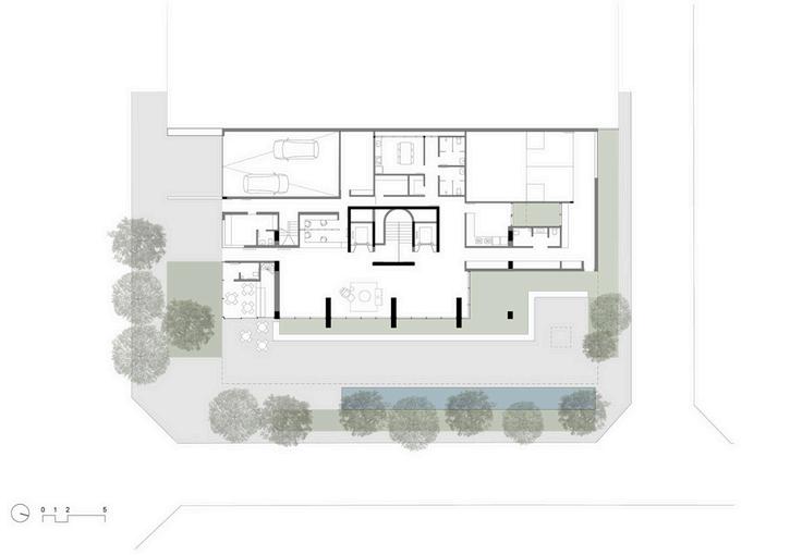 Integrasi dengan Lanskap Alami tiga dengan ketinggian bervariasi ditempa tengah taman luas menciptakan hu harmonis antara arsitektur dan alam. Penggunaan Material Berkelanjutan bangunan menggunakan beton pracet dicat putih dan aluminium anodized material yang tahan lama dan mem perawatan minimal sehingga men jejak lingkungan seiring waktu