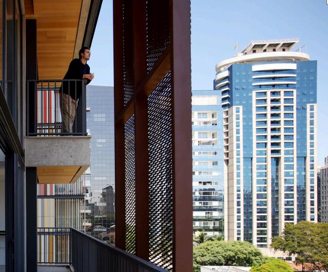 Huma Itaim Building dirancang oleh UNA Arquitetos adalah proyek residensial yang terletak di lingkungan Itaim São Paulo Brasil Bangunan ini mencerminkan transformasi kawasan tersebut, di mana rumah-rumah kecil digantikan oleh menara-menara tinggi.