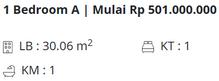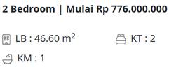 2 Kamar Tidur (2BR) Unit terbesar dengan luas sekitar 45-46 M² cocok untuk keluarga kecil atau mereka yang memerlukan ruang lebih luas. 3.